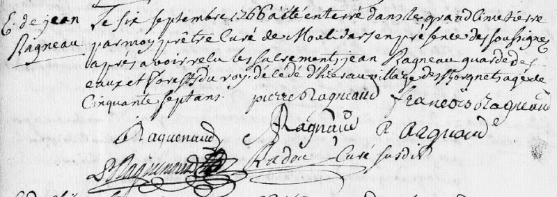 - Francois RAGUENAUD, born 1741, son of the above Jean RAGUENAUD and Catherine GREGOIRE.
