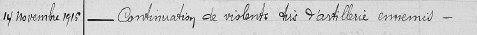 Le 14 novembre, les bombardements violents de l'ennemi continuent.