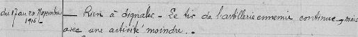 From the 17th to the 20th of November: "nothing to report."