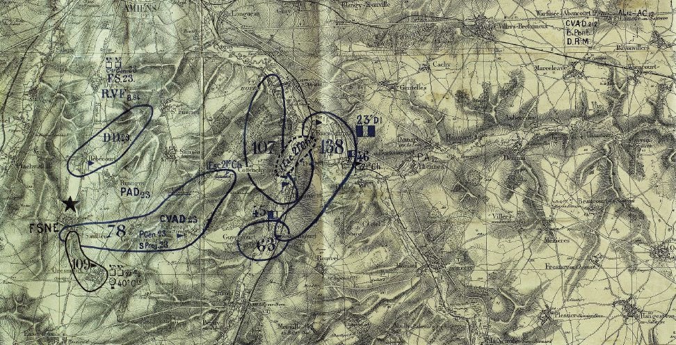 Around 17:00, the Germans came almost as far as the church at Pressoire and launched an attack on Ablaincourt that was stopped by French artillery.