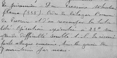 Le 12 novembre, le 338eme RI est chargé de défendre Pressoire. Le Lt Colonel en charge du 338eme RI établit son PC a Vermandovillers, juste a coté de Pressoire. Le régiment se met en position sous le bombardement violent de l'ennemi.